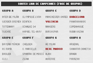 Por ultimo esta el Real Madrid C.F que tiene el grupo mas difícil junto con el Internazionale al equipo de la capital le ha tocado el todopoderoso Milan aunque sus jugadores estén ya un poco viejos mas tarde el Ajax con un gran poderío ofensivo y mas tarde el Auxerre el equipo mas asequible de este grupo.